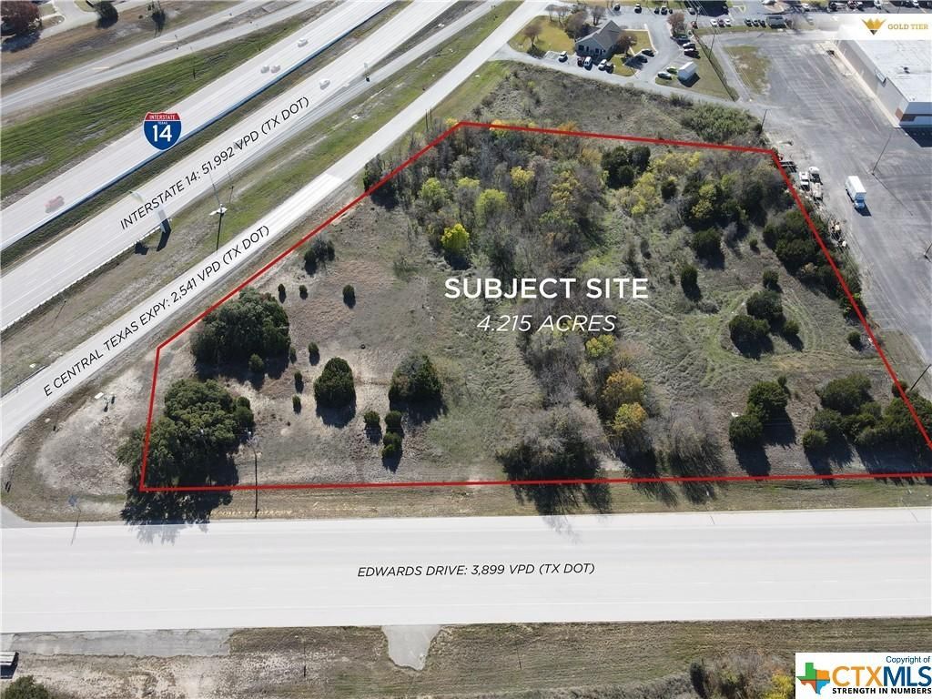 This offering is for 4.215 acres on the hard corner of E Central Texas Expy and Edwards Drive. The site boasts excellent traffic counts and visibility directly to Interstate 14 heading into Harker Heights and Killeen. Multiple major retailers such as H.E.B. and Walmart are in close proximity to the site. For utilities, the site has water and wastewater on site. Capacity has yet to be confirmed. The site is zoned Highway Business District.javascript:__doPostBack('m_lbSubmit','')