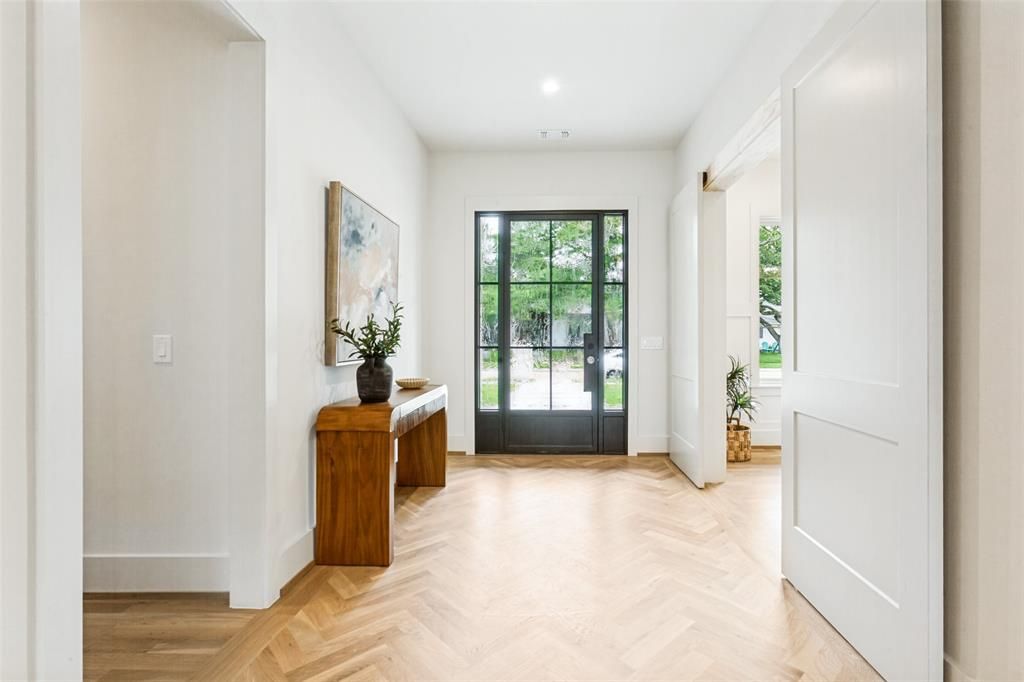 A more thoughtful take on new construction in Richardson’s sought-after JJ Pearce neighborhood—where design, craftsmanship, and everyday livability come together with intention. Built by Fairview Custom Homes, this 2026 custom home reflects a commitment to quality construction and modern building standards, including a pier & post-tension cable foundation system, foam insulation, Andersen windows, and integrated smart home technology—delivering long-term performance, efficiency, and comfort. Spanning 3,674 square feet, the well-balanced two-story layout offers 5 bedrooms—each with a dedicated bath—alongside a private first-floor office and flexible living spaces designed to adapt over time. Natural light fills the main living areas, where white oak flooring, a signature herringbone inlay entry, and tailored millwork create a warm yet elevated foundation throughout. The open-concept design flows seamlessly into the kitchen and dining spaces, anchored by a statement kitchen featuring rich custom cabinetry, fluted detailing, full-height stone surfaces, designer lighting, and a Thermador appliance package—alongside a well-appointed butler’s pantry that enhances both function and entertaining. The adjacent living area is equally considered, with custom built-ins and a cast stone gas fireplace creating a warm architectural focal point. The first-floor primary suite offers a quiet retreat, complete with vaulted ceilings and a spa-inspired bath with a layered, high-end finish palette—featuring custom cabinetry, artisan tile work, and curated lighting. Upstairs, additional bedrooms and a spacious game room provide dedicated space for family gathering—creating separation while maintaining connection to the main level. Additional highlights include a fully finished garage with custom large-flake flooring, dual-zone HVAC, PEX plumbing, and a home pre-wired for audio, visual, security, and smart home integration.