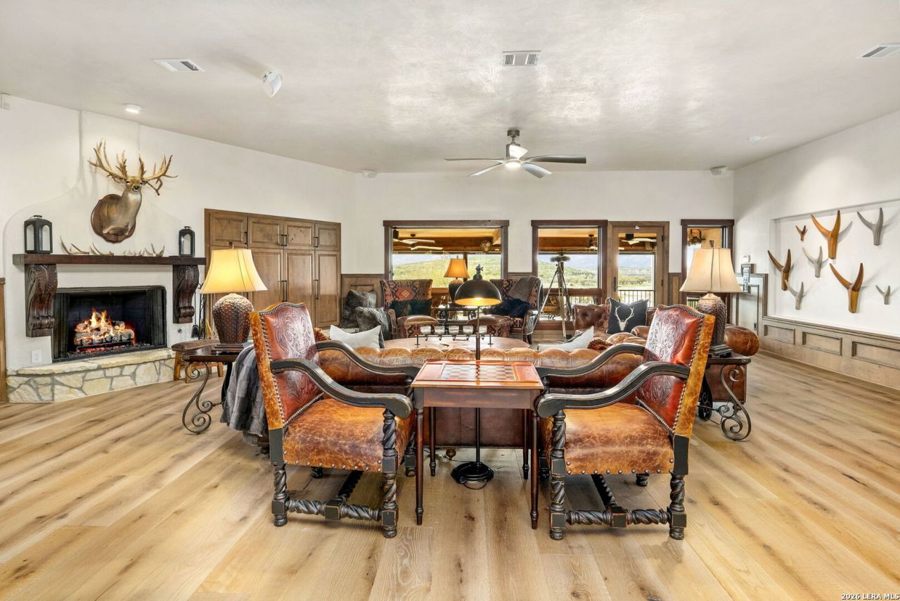 Welcome to your private oasis on the stunning shores of Canyon Lake, Texas-a rare multi-million dollar waterfront estate nestled in the heart of the Texas Hill Country between San Antonio and Austin. This exceptional Comal County luxury property boasts an expansive 4.54 acres with a breathtaking 385+/- feet of pristine waterfront, offering unparalleled privacy, seclusion, and the ultimate lakefront lifestyle. Step into this exquisite 5-bedroom, 5.5-bathroom luxury lake home where every detail has been meticulously crafted for comfort, elegance, and entertaining. This two-story waterfront masterpiece in the highly sought-after Comal School District features spacious living areas with soaring ceilings and panoramic lake views that capture the essence of Hill Country lakefront living. The gourmet chefs kitchen is an entertainers dream, showcasing top-of-the-line appliances, custom cabinetry, and sophisticated design perfect for hosting gatherings large and small. Gorgeous hardwood floors flow throughout the home, while smart home lighting and Sonos sound system integration provide modern convenience and ambiance. Each of the five bedrooms features its own private en-suite bathroom, ensuring comfort and privacy for family and guests alike. The opulent master suite encompasses the entire second story, creating a luxurious private retreat complete with a spa-like ensuite bathroom featuring his and hers closets, a flexible bonus space, and a private balcony overlooking the serene waters of Canyon Lake. Additional amenities include a dedicated billiard room and countless custom touches that make this Central Texas waterfront property truly exceptional for year-round Canyon Lake living. GUEST HOUSE | 660 SQ FT LAKEFRONT CASITA-The charming guest house provides a cozy retreat for extended family or visitors, featuring one bedroom and one full bathroom. This waterfront casita includes a stunning glass shower and a claw-foot tub positioned to overlook the lake, ensuring privacy and comfort while maintaining the luxury aesthetic of the main estate. Outdoor living takes center stage at this Hill Country lake estate. Dive into the luxurious pool with sweeping lake views, perfect for enjoying sunny Texas days and warm evenings with loved ones. The oversized outdoor kitchen is ideal for al fresco dining and lakeside entertaining, while the expansive patio provides ample space for lounging and celebrations throughout the year. ENTERTAINMENT BARN | 2,000 SQ FT EVENT VENUE- Prepare to be amazed by the propertys crown jewel-a 2,000 square-foot barn thoughtfully converted into a full dance hall and bar, making this the most unique entertainment venue on Canyon Lake. Equipped with a professional stage, sound equipment, and dazzling lighting, this one-of-a-kind space is perfect for hosting unforgettable weddings, corporate retreats, family reunions, and celebrations. The barn also features a living space and bedroom upstairs, adding versatility to