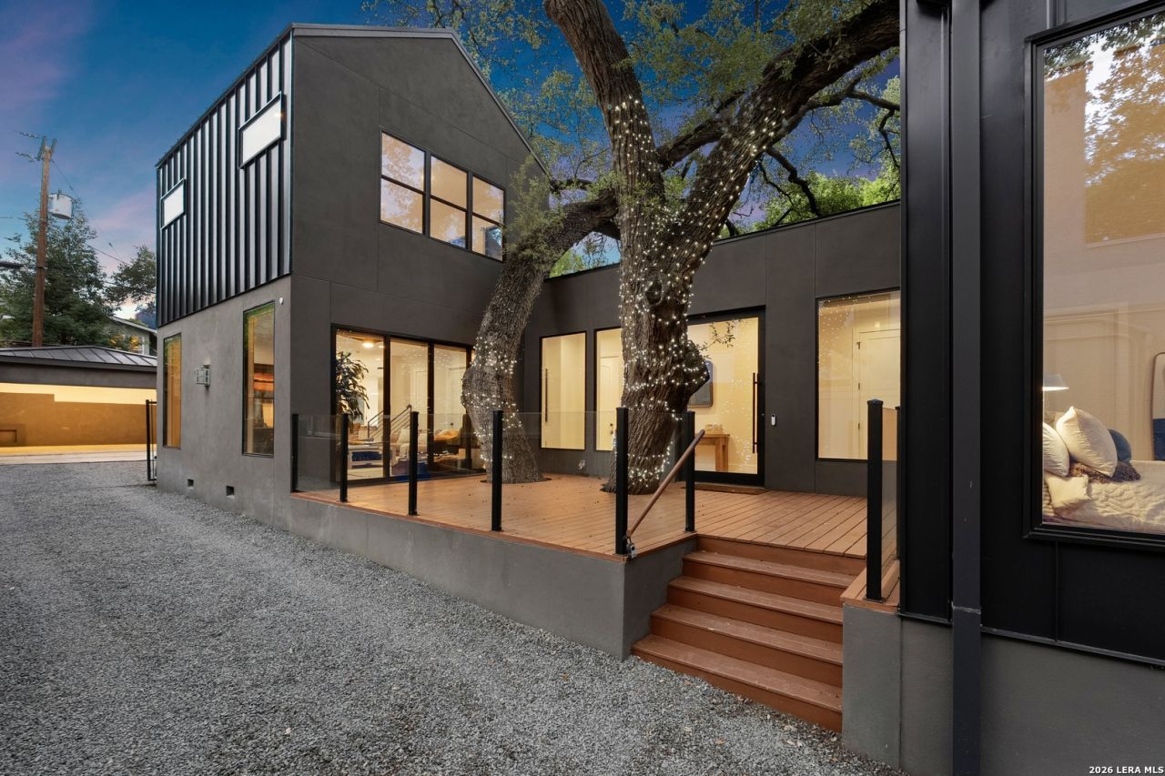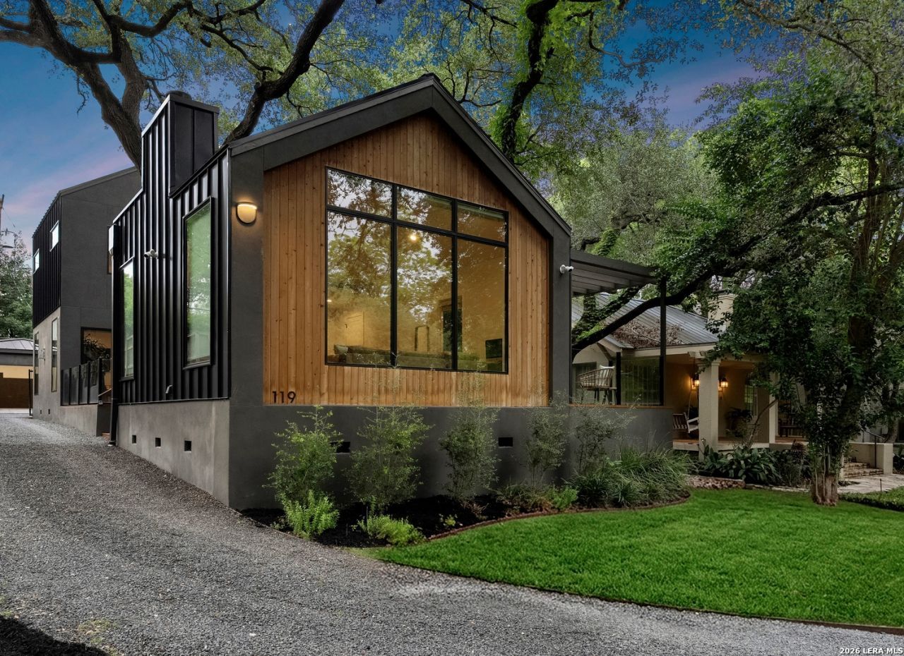 119 Grant Ave - Alamo Heights Nordic in spirit. Restrained, deliberate, and built around light. Set among mature oaks, the home presents a clean, modern composition where architecture and landscape move as one - open, grounded, and quietly precise. Lines are simple. Materials are honest. The focus remains on livability. The main living space unfolds as a single, continuous volume. Light carries through it without interruption, connecting seamlessly to a chefs kitchen defined by custom cabinetry, premium stainless appliances, and an oversized island designed for both gathering and daily use. The primary suite is positioned on the main level - elevated ceilings, a fireplace, and a bath that reads as a private retreat. A soaking tub, walk-in shower, and dual vanities arranged with clarity and intention. A secondary first-floor suite introduces flexibility - guest room, office, or studio - without disrupting the flow of the home. Upstairs, a generous game room opens to treetop views. Two additional bedrooms follow, including one with a private bath, maintaining separation without excess. Material choices remain disciplined - stucco and wood, anchored by a striking metal roof and strong, contemporary lines. Nothing unnecessary. Nothing overstated.