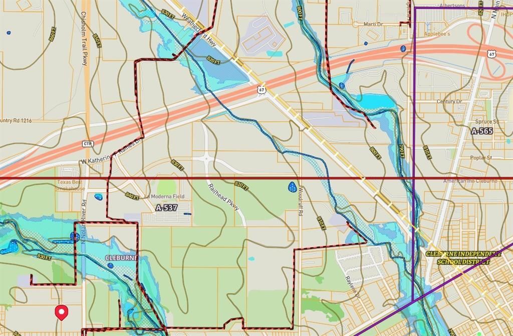 At the end of CHISHOLM TRAIL PARKWAY, THIS PROPERTY HAS NO FEMA FLOODPLAIN and NO PIPELINES CROSSING. Buyers and Buyers Agents should verify on their own before contracting as this is a major factor in comparing this property to others. See attached Survey for boundaries. Buyer and buyer's agent to verify future use with City and County. Land includes 2 lots to be sold together. Please ensure minerals addendum is attached with offer. Excellent for 1031 exchange opportunity or development. Buyers responsible for all due diligence and survey if updates are required.