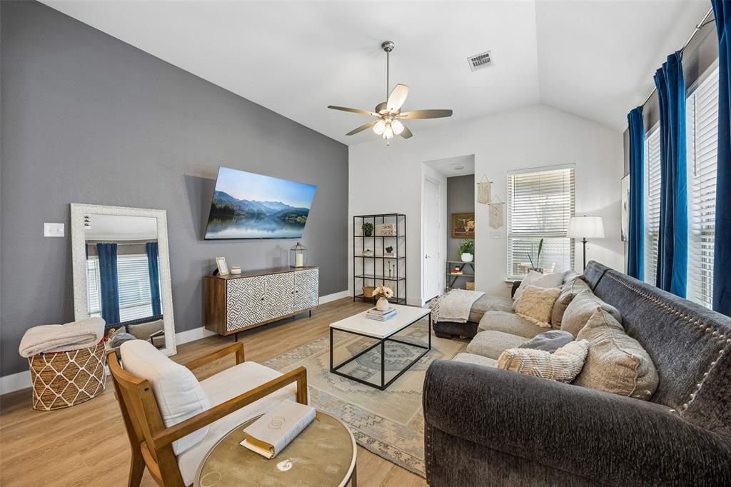 In the heart of Northlake! This stunning 3-bedroom, 2-bath home built by Highland Homes offers the perfect blend of modern style and everyday comfort. Built in 2020, this thoughtfully designed floor plan features an open-concept family room, dining area, and kitchen—ideal for gathering and entertaining. The spacious kitchen is the centerpiece of the home, showcasing stainless steel appliances, an oversized island with seating, and a walk-in pantry for abundant storage. Luxury Vinyl Plank flooring flows through the main living areas, providing both durability and designer appeal. The private primary suite offers a relaxing retreat with a separate tub and shower, along with beautifully upgraded tile finishes. The secondary bath and laundry room also feature upgraded tile, adding cohesive style throughout the home. Spacious secondary bedrooms provide comfort and flexibility for guests, a home office, or hobbies. Enjoy the private backyard with a covered patio—perfect for relaxing or entertaining outdoors. Located in the award-winning community of Pecan Square, residents enjoy resort-style amenities and a vibrant neighborhood atmosphere. Northlake continues to experience exciting growth, with new shops and restaurants opening nearby and easy access to the greater DFW area. Don’t miss your opportunity to own a beautifully maintained home in one of DFW’s fastest-growing regions! 3D tour available.