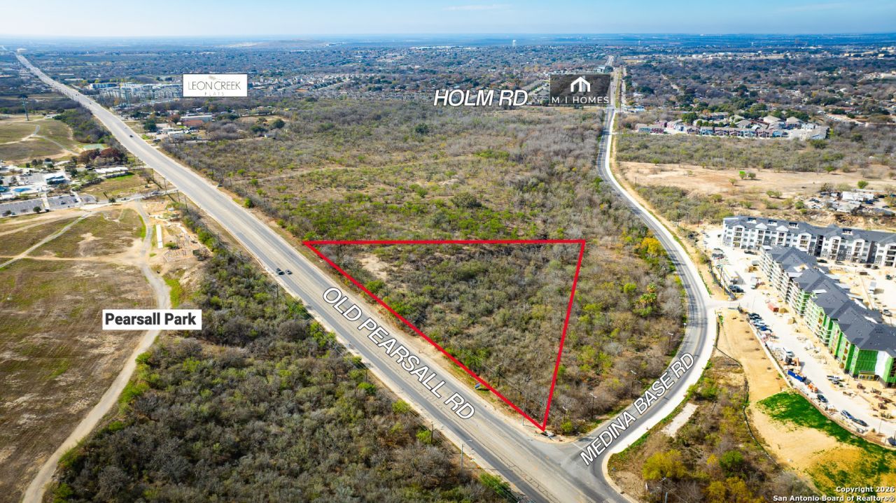 3 acre hard corner development site located at Old Pearsall Road & Medina Base Rd on the high-growth southwest side of San Antonio. The site sits at the entrance of a larger Transit-Oriented Development (TOD) and offers strong visibility, access, and built-in surrounding density. Strategically positioned near Lackland Air Force Base and Port San Antonio, the property benefits from proximity to two of the regions largest employment centers. Adjacent to Pearsall Park and the Greenway Trails system, the site offers direct access to one of San Antonios premier recreational amenities while remaining well connected to major transportation corridors and infrastructure. Located in one of the fastest-growing cities in the United States, this property is well suited for retail, service, or pad users seeking long-term demand supported by population growth, a diverse employment base, and a favorable cost-of-living environment.