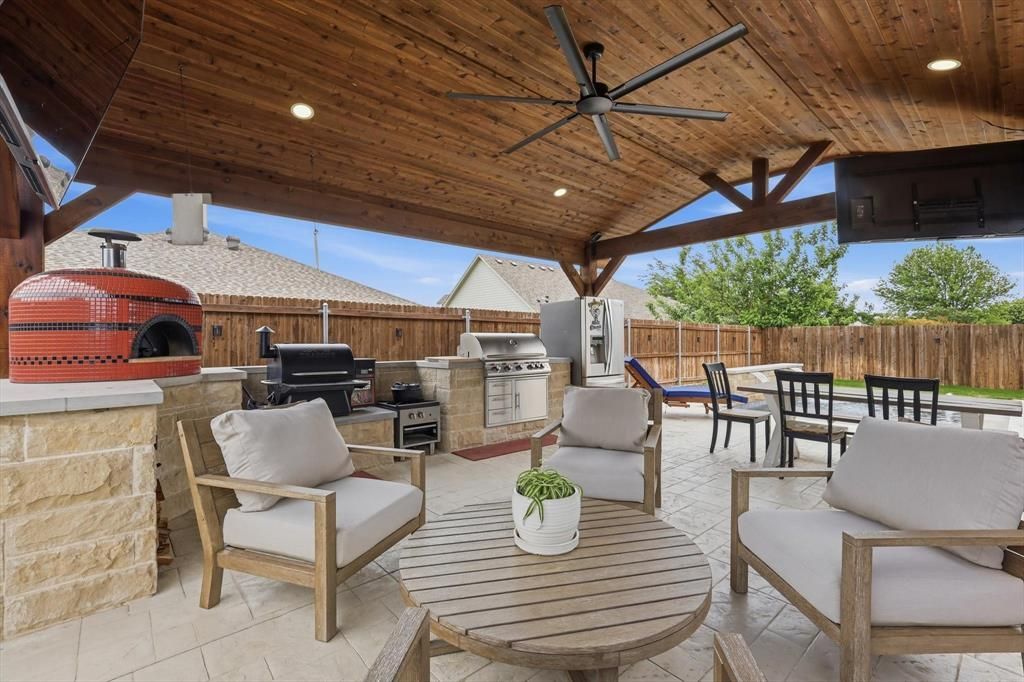 With over $200,000 in owner improvements, this home truly feels better than new! Thoughtful upgrades and intentional design choices elevate it far beyond builder-grade. The current owner has put in the work to transform this once cookie-cutter home into something special, blending style, function, and comfort in all the right ways. From the moment you step inside, you're welcomed by a bright, open concept layout where the kitchen and living spaces flow seamlessly together, perfect for both everyday living and effortless entertaining. Large windows and natural light create a warm, inviting atmosphere that naturally draw people in and make every gathering feel easy and connected. If outdoor living is high on your list, this backyard is going to stop you in your tracks. A 14-foot wide double-sliding door opens to create that ideal indoor-outdoor experience, extending your living space and making it perfect for hosting everything from laid-back weekend brunches to lively pool parties or relaxed evenings under the stars. The backyard itself is truly one-of-a-kind, featuring a stunning heated pool with a sunning shelf, stools, waterfall and back massaging jets. The expansive covered living area and outdoor kitchen are designed to impress. Complete with a gas grill and pizza oven, it's a space built for entertaining, making memories, and enjoying the best of Texas living year-round. This is more than just a home, it's a lifestyle upgrade.