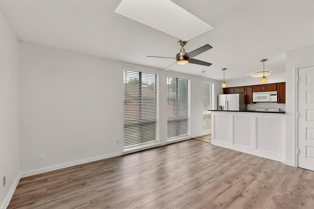 Welcome to Beautiful North Dallas Condo Living! Your search for the perfect first home ends here with this inviting 593 sq ft property, offering a fantastic opportunity to embrace the North Dallas lifestyle. This gated community provides a quiet, secluded feel while still being minutes from all the amenities you'd expect from city living. Outdoor enthusiasts will love the proximity to Fair Oaks Park and the Sopac Trail, both easily accessible by foot. Inside, the kitchen is ready for your culinary adventures with a lovely section of butcher block countertop and a recently installed Whirlpool dishwasher. Imagine cozy evenings by the wood-burning fireplace, and waking up to the convenience of your own coffee bar right outside the bedroom.