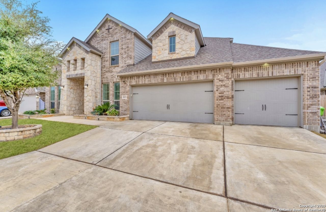 Dont Miss out on this Qualifying VA Assumable Loan at 4.62 rate ~Luxury meets functionality in this Gorgeous 5-bed, 4.5-bath home in sought-after Kallison Ranch. Featuring over $50K in upgrades and a rare 4-car garage, this home offers a gourmet kitchen w/ island, butlers pantry, formal dining, private office w/ French doors, and a grand 20-ft rotunda entry. Enjoy multiple living areas, including a game room, media room, and a spacious family room with cast stone fireplace. The private primary suite includes a spa-like bath, dual walk-in closets, and curved windows. Downstairs guest suite w/ full bath ideal for visitors or multigenerational living. Outdoor upgrades include a sunroom, screened-in patio, outdoor kitchen, and professional landscaping perfect for outdoor entertaining all year around. Extras: custom Drapes and blinds, chandeliers, recessed exterior lighting, whole-home water softener, and mudroom. Prime location near NISD schools, shopping, dining, and JBSA. Why build and have to put in all the extras when this one has it all ~ schedule an appointment today