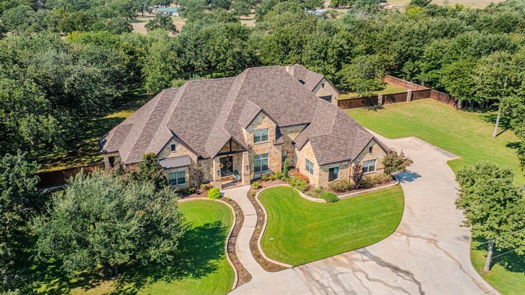 Custom-built luxury home showcases timeless craftsmanship and refined living in the sought-after Timber Creek Estates in Stephenville, Texas. Double iron entry doors open to a light-filled interior with soaring ceilings, hand-scraped hardwood floors, and beautiful views of the pool and backyard. With 4 bedrooms and 3.5 bathrooms, this home offers more than enough space to live or welcome guests. The primary suite is a romantic sanctuary, featuring dual walk-in closets, separate vanities, travertine flooring, a deep jetted tub, and a spa-inspired glass shower with dual showerheads. Two additional bedrooms share a bathroom with separate vanities, while the upstairs offers a private bedroom, full bath, living area, and a versatile landing with a door entry to reinforced attic storage. The chef’s kitchen features stainless steel KitchenAid appliances, ice maker, granite surfaces, and opens to a breakfast nook overlooking the sparkling pool. A formal dining room and office - possible 5th bedroom - provide flexible spaces for entertaining and work. Outdoors, enjoy a resort-style backyard: chlorine pool with waterfalls, hot tub, outdoor kitchen, shower, bathroom, and fireplace which works as gas or wood-burning. The pool house offers central air and heat and its own water heater and septic – perfectly planned for a future separate living quarters. Set on 2 acres of fully irrigated Tiff Tuff Bermuda grass, the property is enclosed by a custom privacy fence; and features a 3HP variable-speed water well pump, highly-rated fiberglass asphalt luxury shingle, and outdoor sound system. From celebrating life's moments together to peaceful evenings by the fire or pool, this property blends elegance, comfort, and amenities for a one-of-kind place to call home. Construction completed in 2016. Ask agent about the full amenities list, architectural plans, and foundation engineering plans.