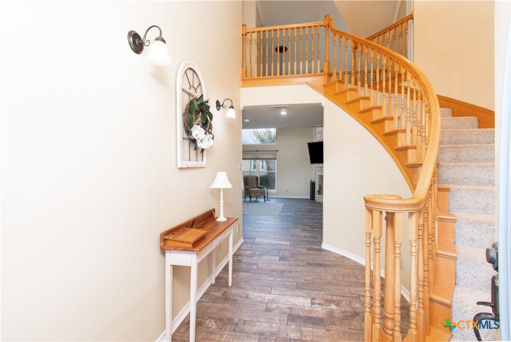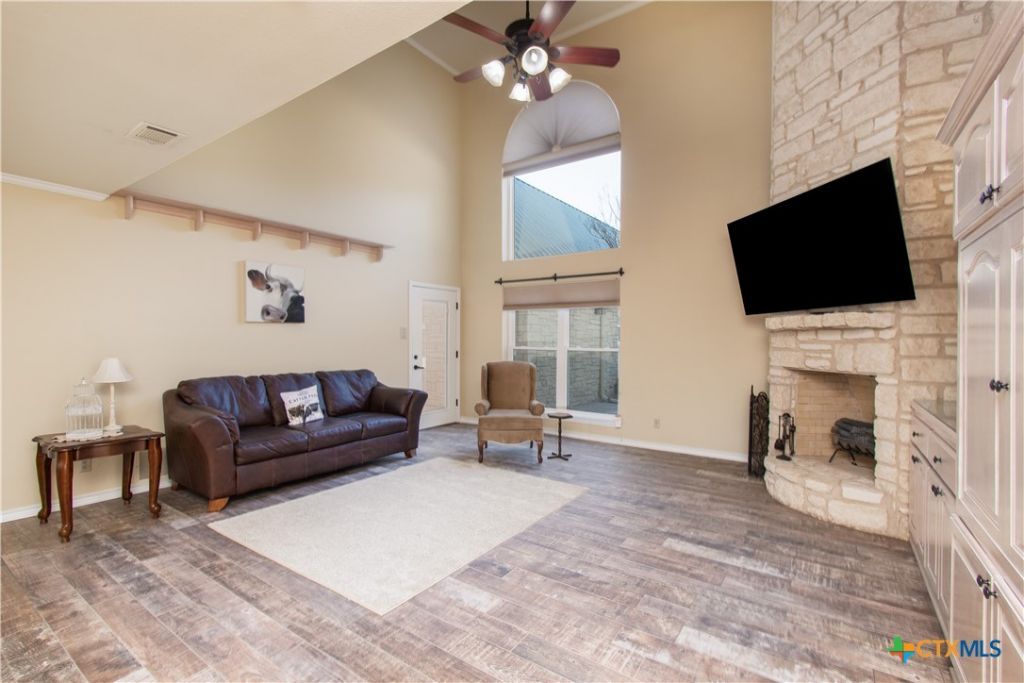 Escape to this remarkable two-story home tucked among towering trees on 4.587 acres of tranquil countryside. A welcoming covered porch invites you inside, where a beautifully designed layout awaits. The chefs kitchen features a Sub-Zero refrigerator, island, abundant cabinetry, and a butlers pantry. The breakfast nook includes a unique plant cabinet with built-in water and drainage and connects to the formal dining room accented by stunning built-ins. The impressive living room boasts vaulted ceilings and expansive windows that fill the space with natural light. The main-level primary suite offers a peaceful retreat with a jacuzzi tub, walk-in shower, and generous walk-in closet. A guest bathroom and a well-appointed laundry room with a sink and hamper cabinet complete the first floor. Upstairs, two spacious bedrooms with large closets and a full bathroom provide comfortable accommodations for family or visitors. A dedicated storage room offers flexible space perfect for the sports or hobby enthusiast. Additional highlights include a Generac generator, five-car garages with extensive shelving, a fully functional one-bedroom guest house/mother-in-law suite with a kitchen and full and half bathroom?ideal for guests or potential rental income?and a separate game room. Enjoy the best of country living with the convenience of nearby amenities. Located just 5 minutes from Belton and 15 minutes from Killeen/Ft. Hood. Additional acreage available. Total combined square footage for the main home, guest house, and game room is 4,164 sq. ft., featuring 4 total bedrooms, 5 full bathrooms, and 4 half bathrooms. Additional 17.5+- acres with horse barn available.